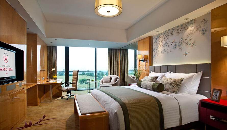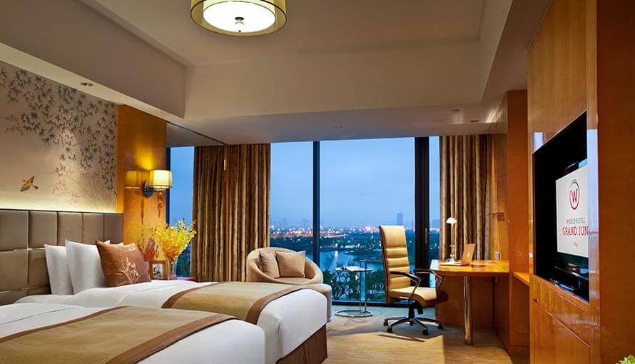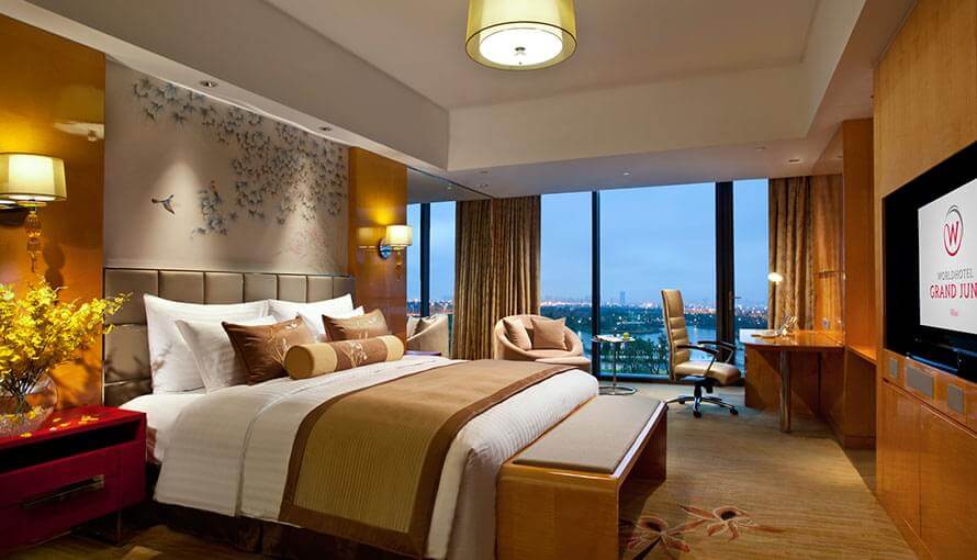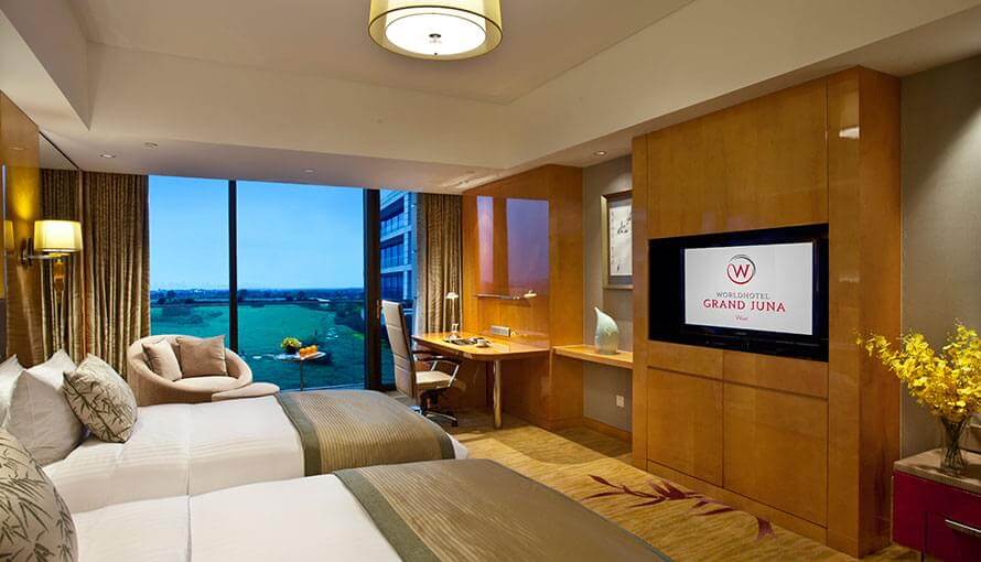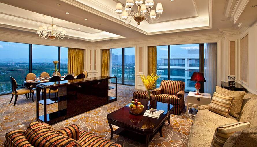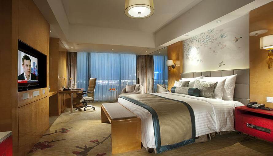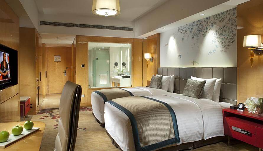 酒店擁有370間奢華套房及客房,面積從46㎡至184㎡不等,并配有景觀陽(yáng)臺(tái)??头靠臻g寬廣,配備各類(lèi)時(shí)尚家具、豪華床上用品,房間配有4個(gè)枕頭并有7種特色枕頭可供選擇(賽羽超柔枕、蕎麥枕、絲棉枕 、乳膠枕、記憶珍珠粒枕、決明子枕、兒童枕),衛(wèi)生間淋浴房與浴缸各自獨(dú)立,處處充滿(mǎn)了細(xì)心關(guān)懷。酒店客房及公共區(qū)域,均有WIFI覆蓋,并且還為客人提供屋頂花園、商務(wù)中心、洗衣服務(wù)、叫醒服務(wù)、送餐服務(wù)、免費(fèi)停車(chē)、行李存放等服務(wù),以滿(mǎn)足不同客人的需求。